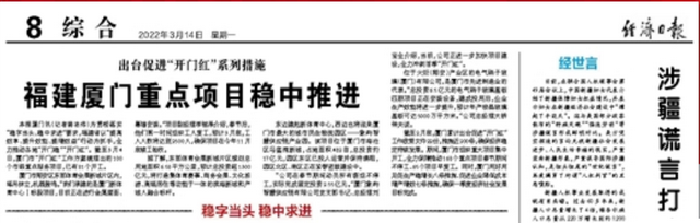 新华社以《厦门:一季度各重大项目平稳运行》为题,报道尊龙人今年的“快节奏”。